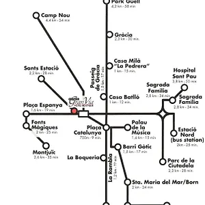 Dotato di Wi-Fi in tutta la struttura, l'Hotel Center Gran Via Barcellona offre sistemazione a circa 25 minuti a piedi da Font màgica de Montjuïc. L’hotel offre un parcheggio pubblico nelle vicinanze.